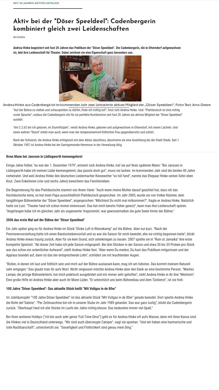 Aktiv bei der „Döser Speeldeel“: Cadenbergerin kombiniert gleich zwei Leidenschaften